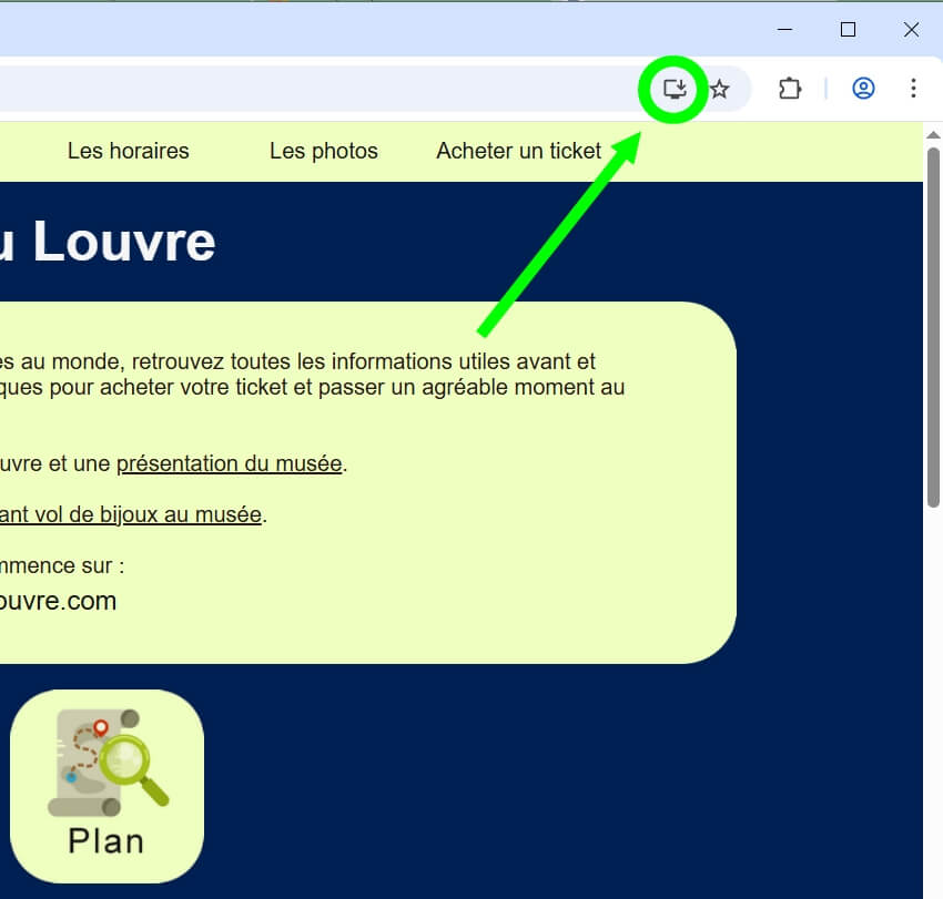 Dans la barre d'adresse de votre navigateur, en haut à droite, cliquer sur le logo installer / télécharger.